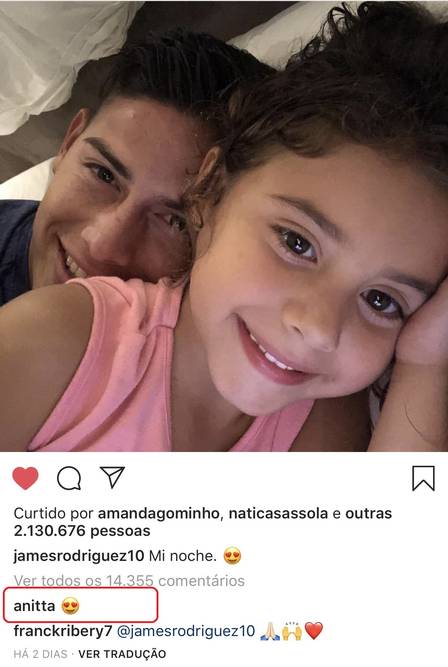 Anitta teria aproveitado a nova fase para flertar com o jogador colombiano James Rodríguez, de 27 anos. Desde o fim de setembro, a cantora vem curtindo e comentando posts do bonitão no Instagram e flertando com ele nas redes sociais. Os dois, vale lembrar, estão solteiros, como informa o jornal Extra.