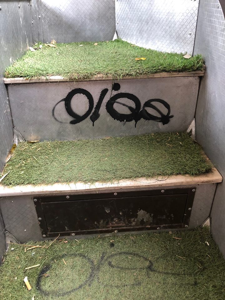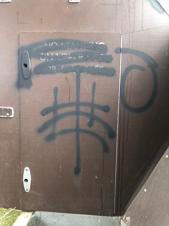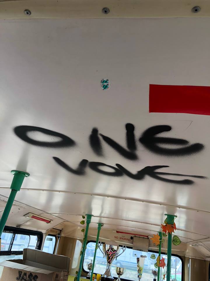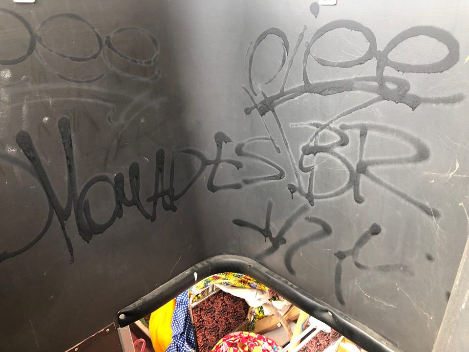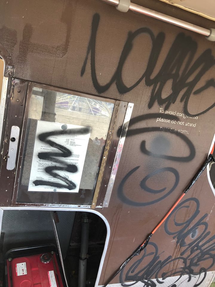 Uma vez em que eles foram expulsos de veículos em movimento decidiram pulverizar a pinta de todo o local e em todos os nossos veículos. Eles tentaram fugir. Conseguimos fazê-los limpar 10 % de toda a destruição que tinham feito.