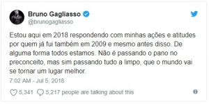 Após a polêmica causada por tuítes do influenciador digital Júlio Cocielo, um novo caso surgiu com a recuperação de mensagens antigas postadas pelo ator Bruno Gagliasso.